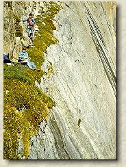 One of the most awesome climbs in the park, yet still very accessible to the beginning climber, Kiener's Route is a YCS favorite. The route starts at Mills Glacier and proceeds up a 1000 foot couloir known as Lamb's Slide (ice axes and crampons required to climb Lamb's Slide). Moving off Lamb's Slide, you are led across Broadway, a narrow ledge varying in width from several feet to six inches. The ledge overlooks a sheet of granite plunging down to Chasm Lake far below. Proceeding up from Broadway, you will climb to the summit of Longs Peak following a route requiring climbing gear and climbing technique. Kiener's is one of North America's classic climbs.